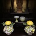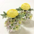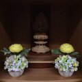 アーティフィシャルフラワーで、アイボリーの陶器花器にアレンジしました、ミニサイズの1対の仏花です。