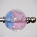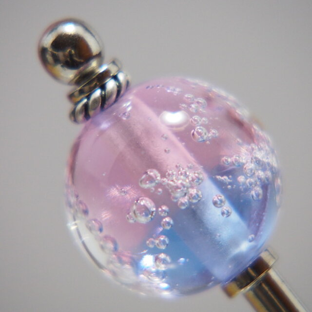 ピンクと藍鼠色の地に しゅわしゅわの泡を閉じ込めたとんぼ玉を