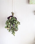 ハーブ畑でのびのびと育てたハーブやお花は、収穫してすぐにハンギング乾燥させています。畑は農薬や化学肥料などは使わず、環境をできるだけ自然界に近い状態にしています。除草剤を使っていないので、雑草は刈り込んだり抜いており、そのまま土壌の層を作る材料となっています。コストを押さえられるところは押さえ、できるだけお気軽にお迎えしていただきたいと思い、育て、制作しております。