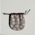 綿麻やリネンなどの布を併せて作ったちょっとオシャレなミニサイズの巾着です。