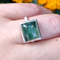 ルチルクォーツ×マラカイト ロングスクエアカボション シルバーSV925リング