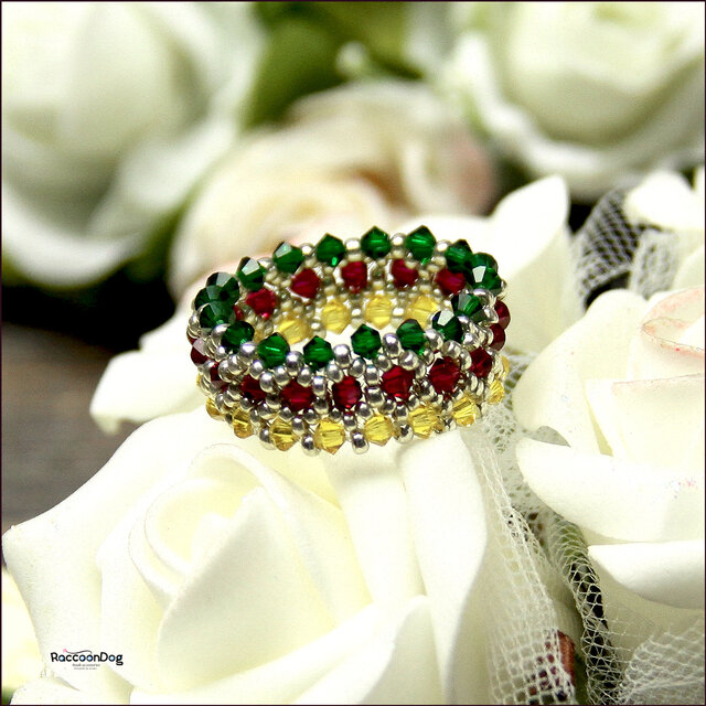 ビーズ,リング,コスチュームジュエリー,ビーズアクセサリー,ビーズリング,ビーズ指輪,スワロフスキー,Xmas,クリスマス