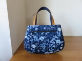 リバティ 紺色のイルマでミニトートバッグを作りました。