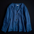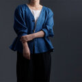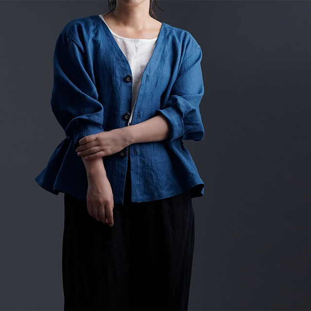 【wafu プレミアム】Linen Basque jacket 艶バスク・ジャケット/オーシャン h005e-ocn3