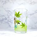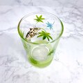 使いやすいサイズのグラスの下側にグリーンを巻いて、青楓と茶トラさんを散らしました。
