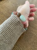 こんばんは(^-^) 届きました❗可愛いです(^-^) アマゾナイトとラブラドライトのバランスが可愛い❤️ ラブラどのにぎにぎ石と水晶チップまで頂いて、おまけが凄すぎます! ありがとうございます❤️ 大切に使わせていただきます。 雪大丈夫ですか?おからだご自愛ください。 これからも可愛い素敵な作品楽しみにしてます(^-^)