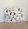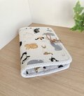 表布はコットンリネン、内布はコットン生地です。いずれもしっかりした丈夫な素材なので、日常使いにピッタリです。縁はコットンリネンの生地で作ったバイアステープで始末することで、引き締まった雰囲気に仕上がりました。