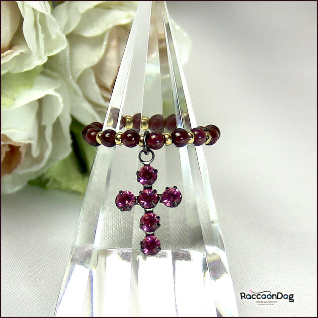 ビーズ,リング,コスチュームジュエリー,ビーズアクセサリー,ビーズリング,ビーズ指輪,クロス,ガーネット,天然石,1月,誕生石