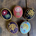 コロンとした楕円の木枠のブローチ台にオリジナルの銀杏のモチーフをあしらいました。
