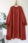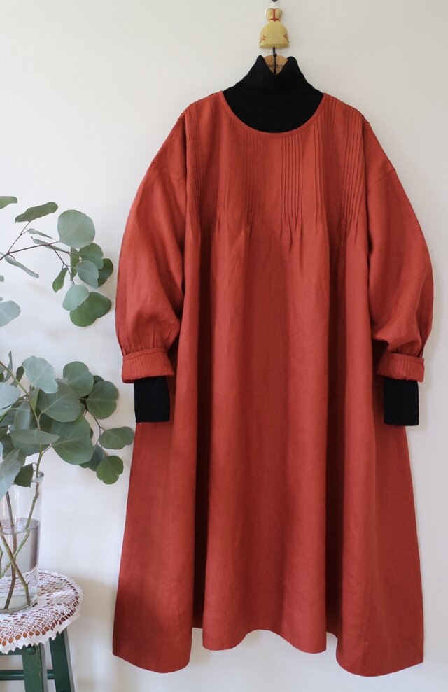 最終出品★国産リネン100% ピンタックワンピース★やや厚手