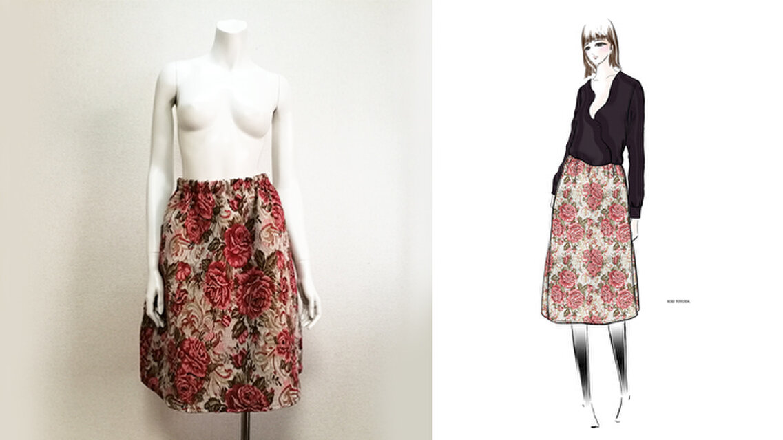 布地を多めに使用し、ゴムでウエストを絞ったフレアータイプになります。