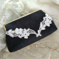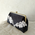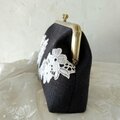 黒リネンにアンティークレースをのせたがま口ポーチ