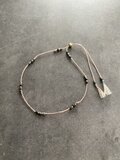 コードが肌に溶けて石が浮かんでいるような繊細なブレスレットです。