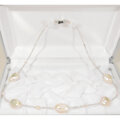 大粒の本真珠(バロック、淡水、ナチュラルカラー)のネックレスです。クラスプは高級感があり、輝きも綺麗なSV925製(ロジウムメッキ)を使っています。