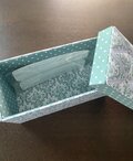 フタ部分にキルト芯を入れリボンとブラッズで装飾してラグジュアリーに仕上げました。