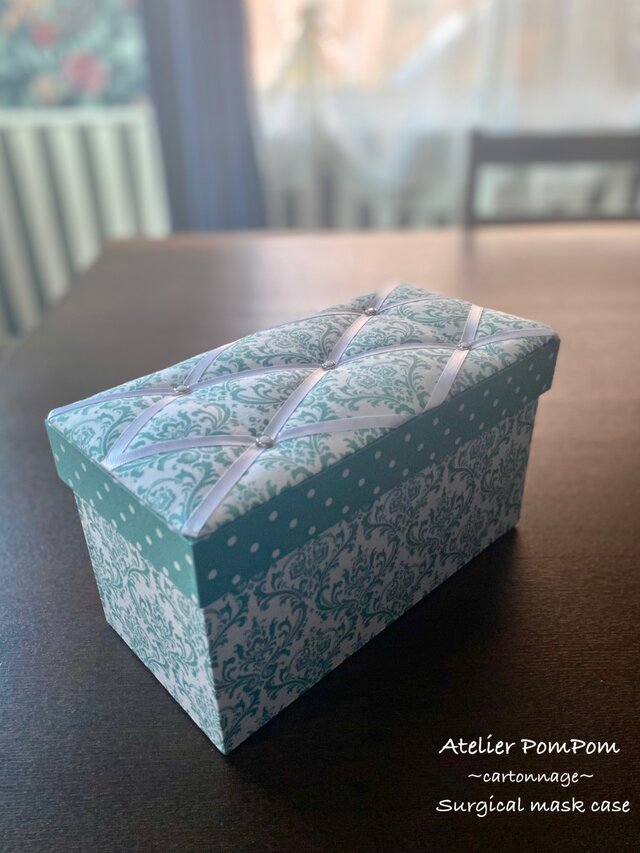 人気のダマスク柄の生地を使って作ったマスク収納ケースです。