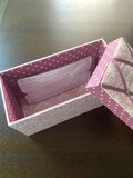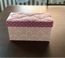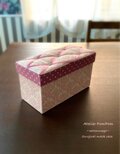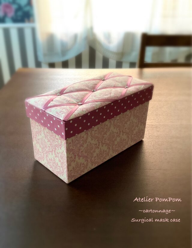 フタ部分にキルト芯を入れリボンとブラッズで装飾してラグジュアリーに仕上げました。