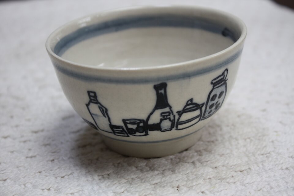 半磁土で成形し濃淡の呉須で模様を入れてあります。