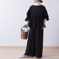 たっぷりギャザーが大人かわいいティアード2WAYブラウス/ブラック