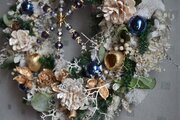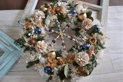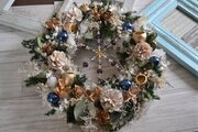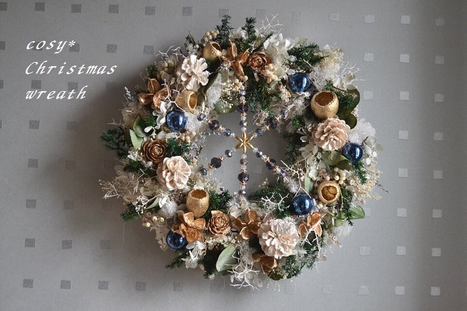雪をモチーフにブルーや白でアレンジした綺麗目リース。