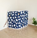 表布はコットン、内布はコットン生地です。いずれもしっかりした丈夫な素材なので、日常使いにピッタリです。縁はコットンリネンの生地で作ったバイアステープで始末することで、引き締まった雰囲気に仕上がりました。