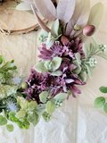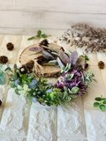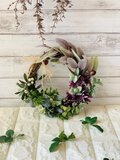 様々な草花がグループごと盛りだくさんに付いたリースです。