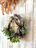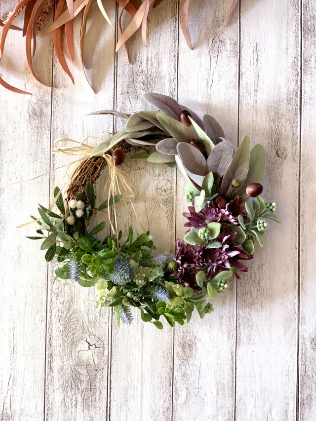 そんな時に落ち着いた色合いの草花で心も気持ちも「ほっこり」とさせてくれるリースをと思い制作しました。