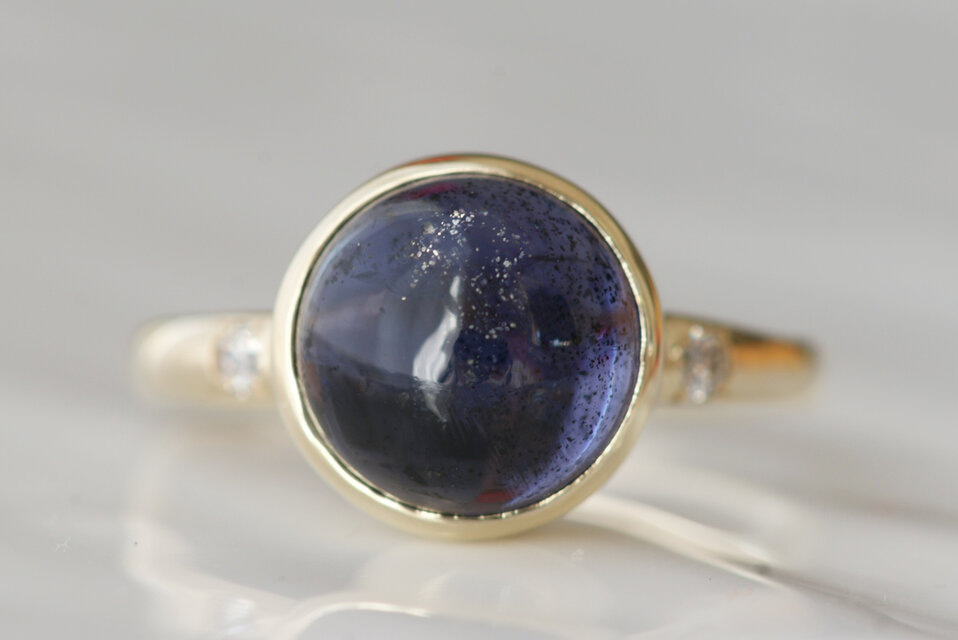 チラチラとプラチナ色のインクルージョンを含んだアイオライト