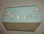 牧場の馬の絵が描かれたプリントのコットンブロード地のポーチです。