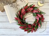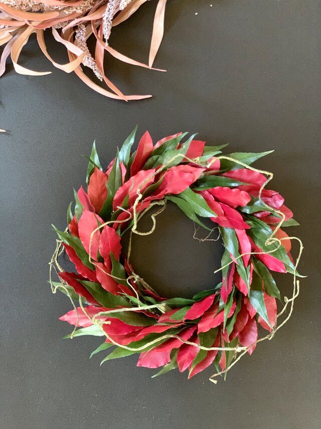 クリスマスカラーのレッドとグリーンのリーフのみのを使い枝を絡ませた素朴でナチュラル感たっぷりのリースです。
