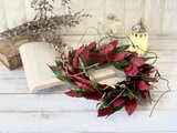 クリスマスリースは寝かせててテーブルフラワーーとしても、飾る場所やイメージに合わせて楽しみ方もいろいろです。