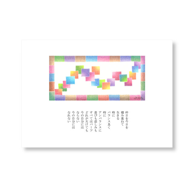 色鉛筆画と言葉を組み合わせた作品です。