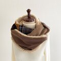 いろんな表情が楽しめる☆パッチワークデザインのスヌード 多素材使用 ウール混 フリンジ チェック ボア ブラウン系カラー