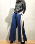 柔らかジャージー素材のスポーティーなワイドパンツです。