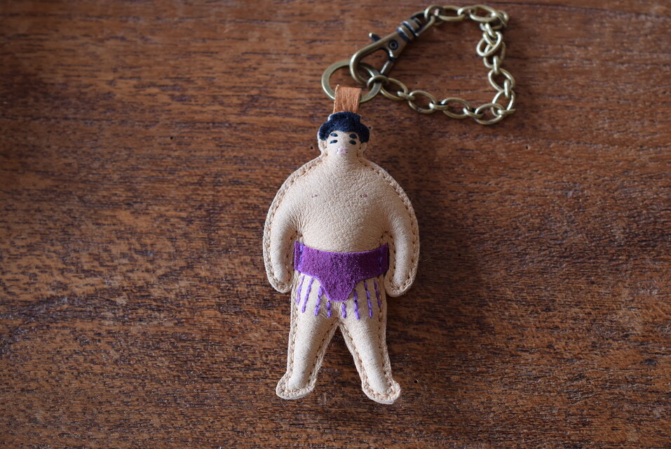 豚革の中に綿を詰めて作った関取のバッグチャームです。