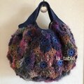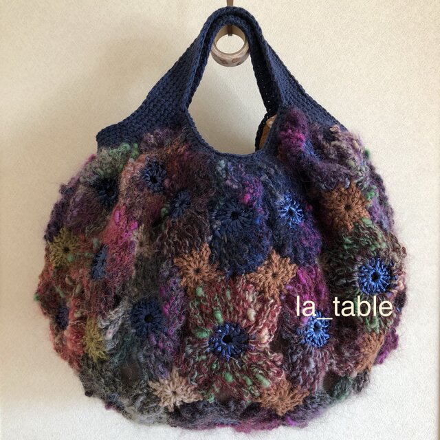 フラワーモチーフをたくさん繋いで、バッグに仕立てました。