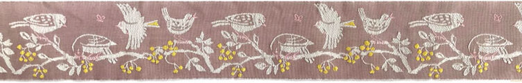ドイツ ジャカードリボン50cm Kafka 枝の小鳥 ピンク