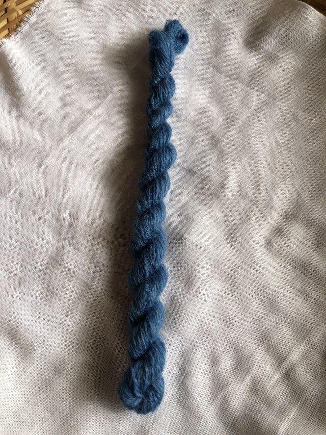 岡山県産フライスランド羊と南アフリカ産キッドモヘアをそれぞれ藍染めした後、ブレンドしたものです。