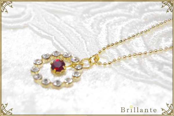 一粒のガーネットのジルコニアが輝くネックレスです。