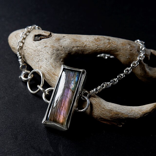 パープル系の光が浮かぶラブラドライトをシンプルにシルバーチェーンで繋いだブレスレットに仕上げました。