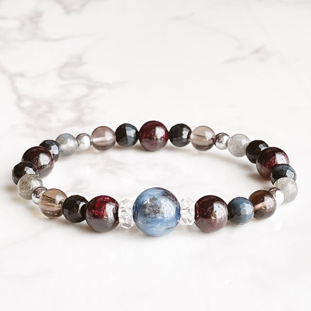 ❤️〈375〉【臆病さや迷いがなくなる】 カイヤナイト・ガーネット・ブルータイガーアイ 天然石パワーストーンブレスレット