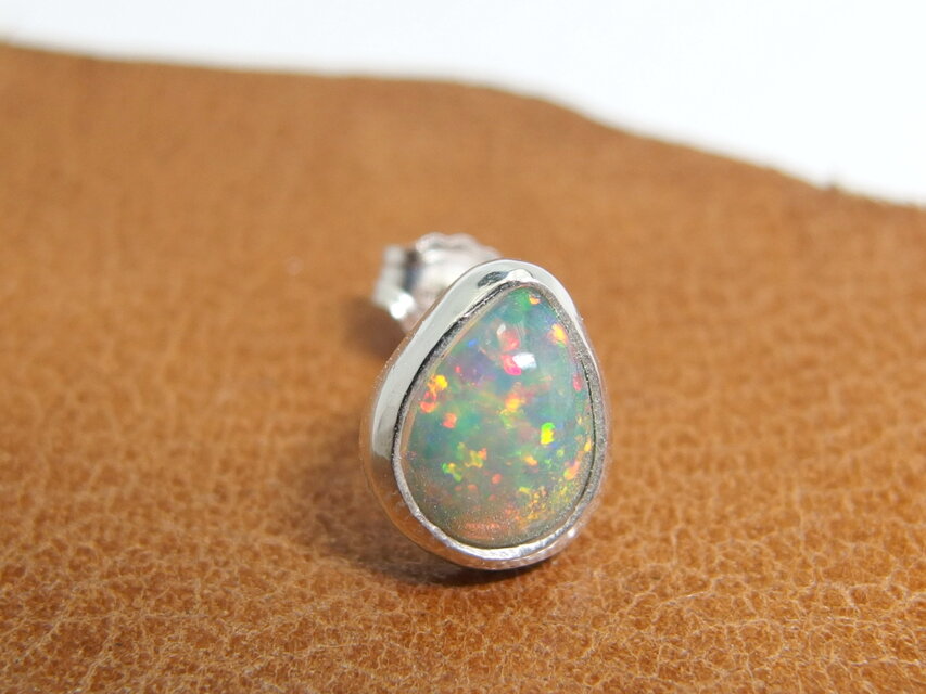 可愛らしいしずく型のエチオピアンオパールをシンプルなスタッドピアスに。