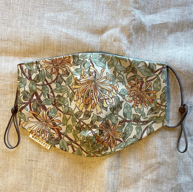 ウィリアム・モリス不朽のデザイン「ハニーサックル セージ」でマスクを作りました。とても素敵!