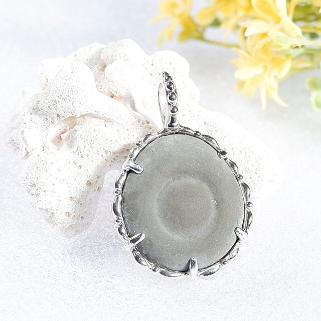 カナダのケベック州にある河川や湖の底から産出するフェアリーストーンと呼ばれる石をペンダントに仕上げました。