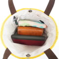 二つ折りのお財布・スマートフォン・タオルハンカチを入れても、まだ余裕があります。