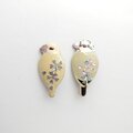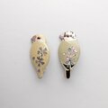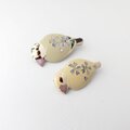 見返りポーズの文鳥をモチーフにした塗りのブローチ。