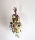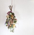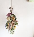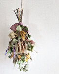 ハーブ畑で育てたユーカリポポラス、アメジストセージ、クラスペディアなどを使ったドライフラワースワッグです。