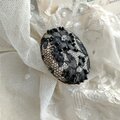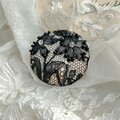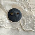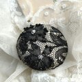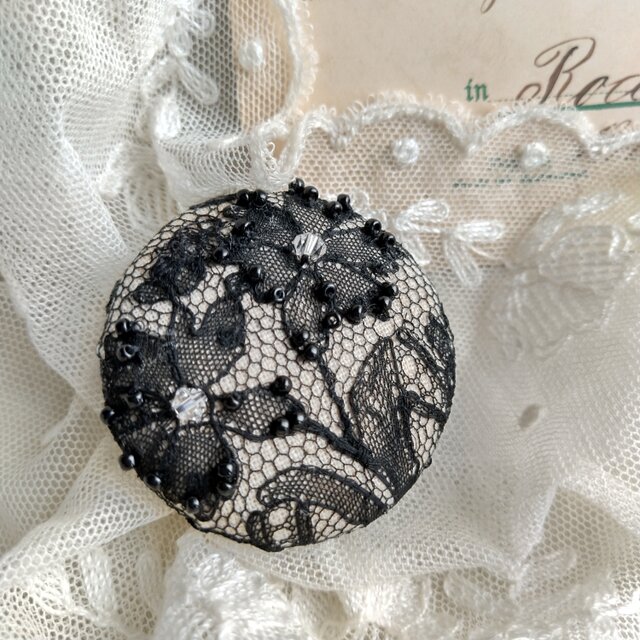 リネンにアンティークシャンテリーレースと言われるブラックレースをのせたブローチです。