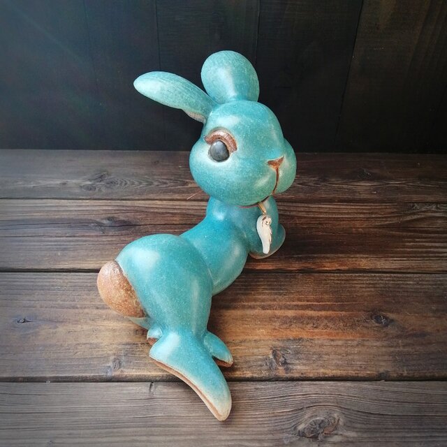 のんびりくつろぐうさぎの置物です。
