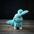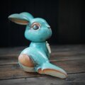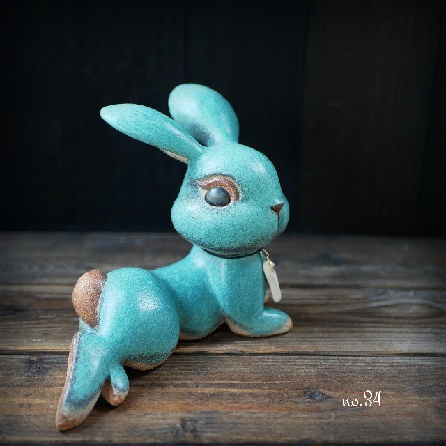 長々と脚を伸ばしてくつろぐうさぎの置物です。